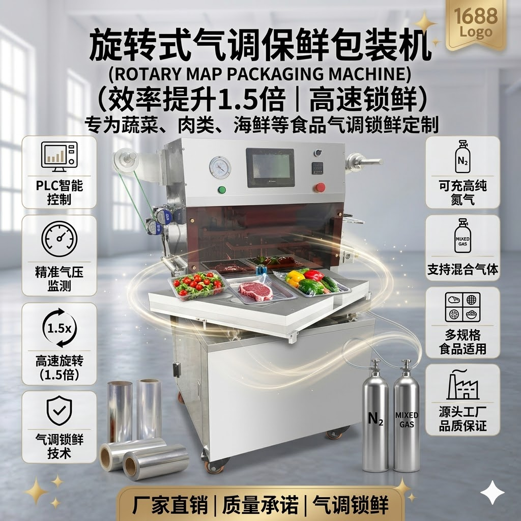 全自动转盘式蔬果气调包装机 盒装熟食真空封口机 鲜肉保鲜包装机